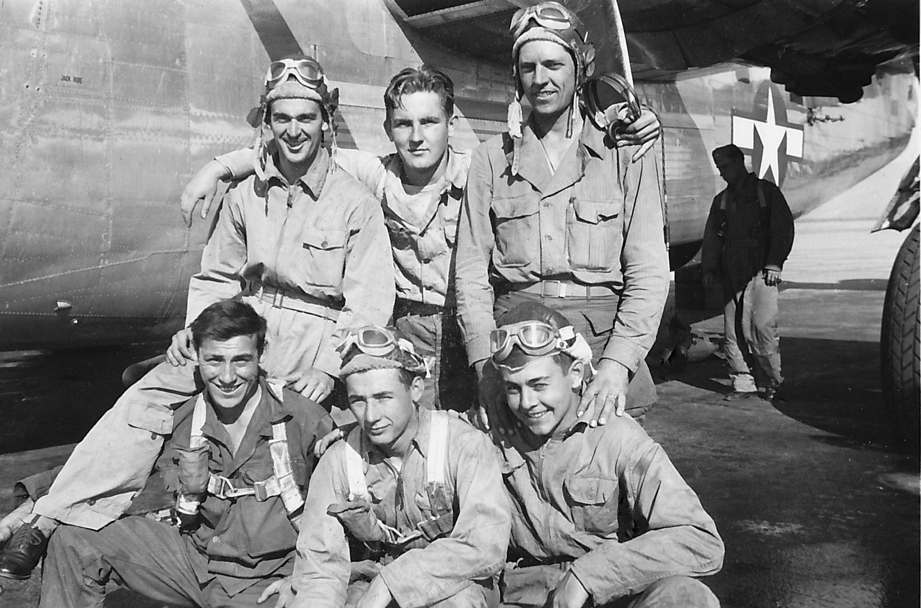 The crew are pictured above in the USA just prior to overseas departure. Their time of arrival on-base is uncertain, but most probably early in 1945. They first appear in the Ops Log on the night of 20/21 Feb '45. Their 17th and final mission occurred on the night of 6/7 Apr '45 when they crashed in a mountain in Norway. All eight crewmen and four OSS agents were killed. Members of the OSS Mission RYPE were led to the crash site by Norwegians and gave the deceased a crude burial beneath stones on-site. William Colby identified the crew in a letter to OSS Hq in May of 1945. Names have NOT been matched to faces in the above picture. Dibble had arrived at Harrington with the 850th BS, in May '44 as the Assistant Operations Officer. He had flown overseas with the Melinat Crew.