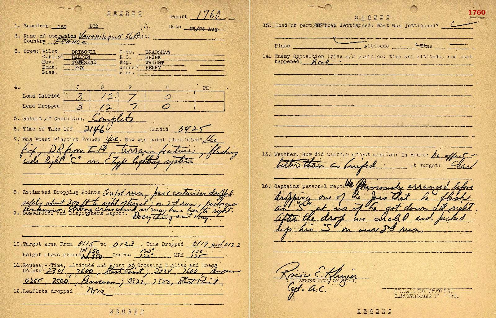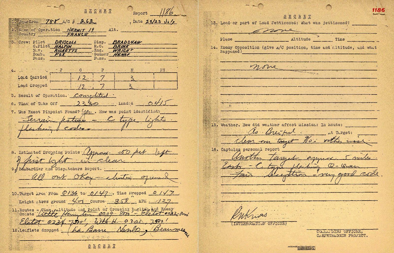 George Brannan and Richard Creighton were KIA on a daylight mission 8 May 1944. Harold Pantis became a POW on the same day. Robert Ricketts was assigned as Navigator of the crew three days later when the Driscoll crew were attached to the 801st BG. Driscoll's crew thus began at Harrington not having to orphan anyone as many other crews had to do.